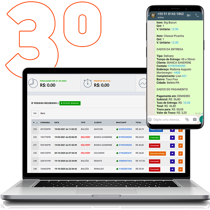 Seus clientes compram pelo sistema e você recebe o pedido no seu WhatsApp tudo organizado e sem taxas!